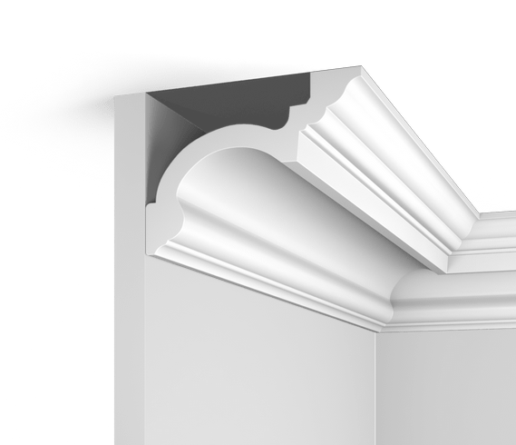 Карниз из полистрола HiWood, Корея. Полистирол - высокопрочный термопластичный полимер, отличающийся особой плотностью, что делает его влагостойким и износостойким.